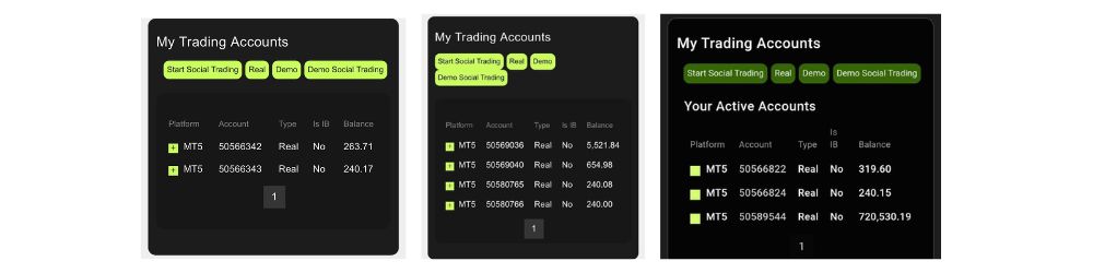 Weil Bilder mehr als Worte sagen, hier die Screenshots dazu. Das 1. Bild zeigt zwei Konten zu je 10€ und das rechte einen Einsatz mit 220€, verteilt auf 4 Konten, mit dementsprechender Hebelwirkung.